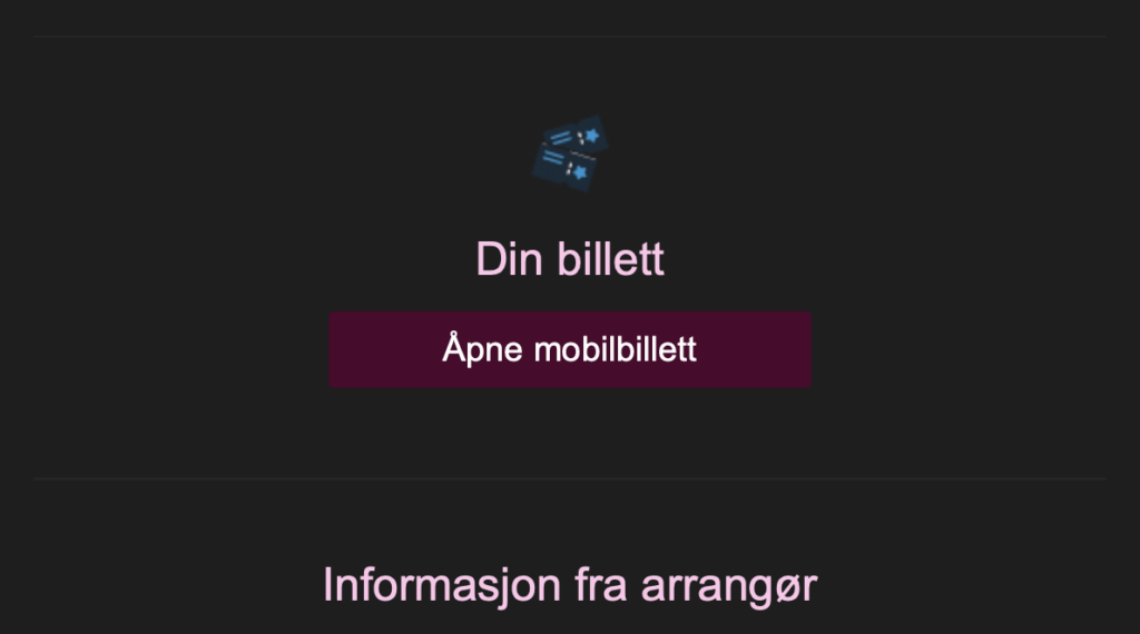 - Klikk deg inn på e-posten med billetten din. Litt lenger ned velger du «Åpne mobilbillett».